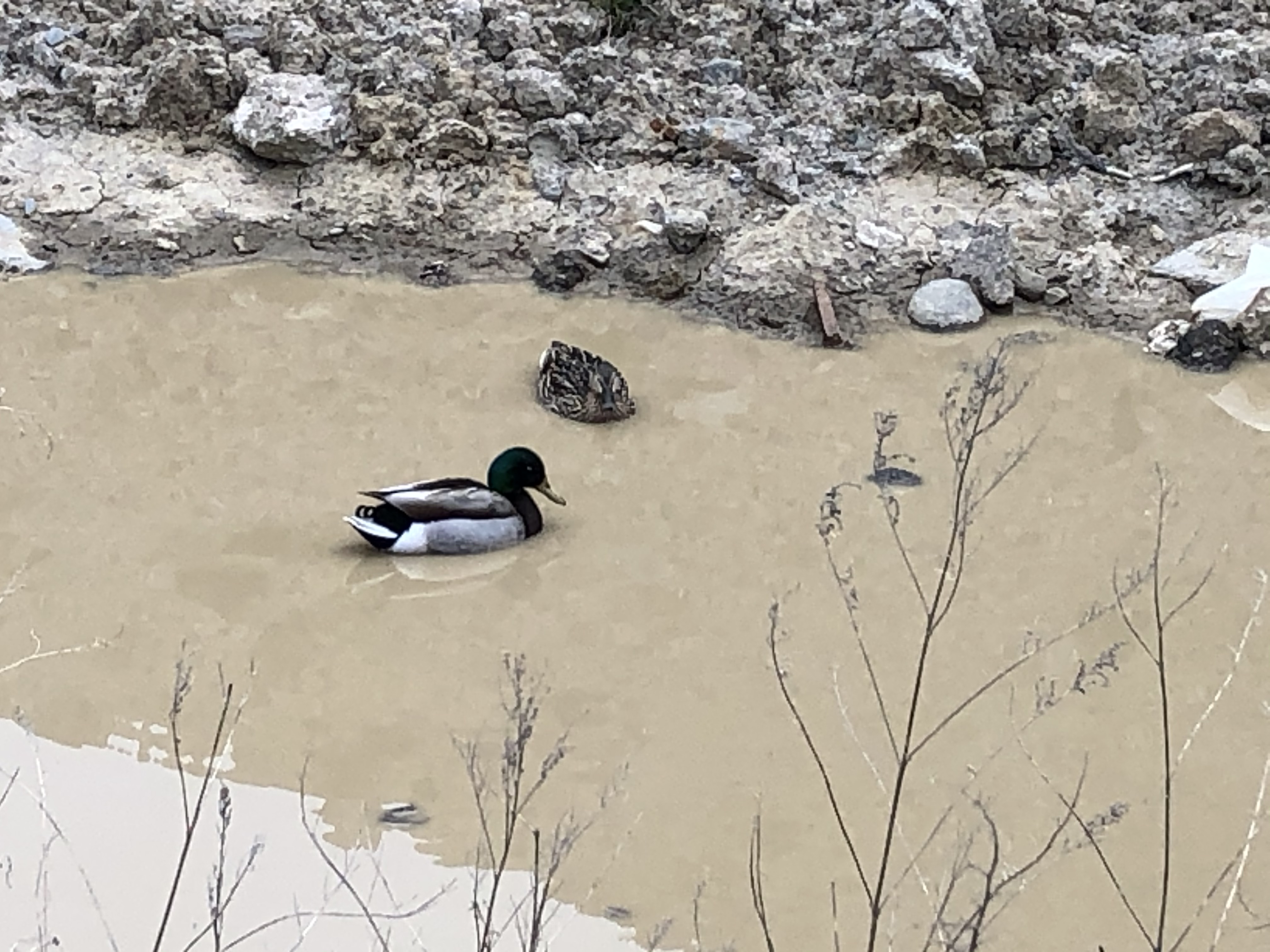 So they made sweet love on their private lake, and began to build a nest.  Not a lot of options for nest locations.  This lake is a 5 or 6 day heat wave from not even being a lake anymore, it’s so small.  That doesn’t bother them at all.  They frolic around their little construction site lake, which is soon to suffer a fate, only foreman or contractor could predict.  They don’t need it that long.  How long does it take to make Duck Babies and teach them to fly?  Can’t be that long!